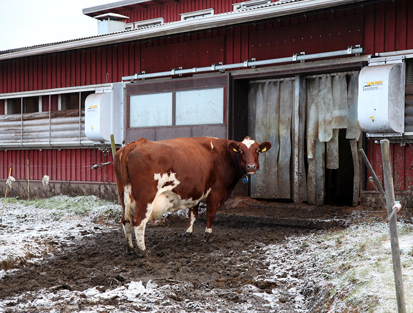 Myös kovilla pakkasille ovi pitää sulkea, etteivät navetan vesiputket jäätyisi. Kylmällä myös lantakäytävä voi jäätyä oven kohdalta, ja eläimet liukastelevat siinä.