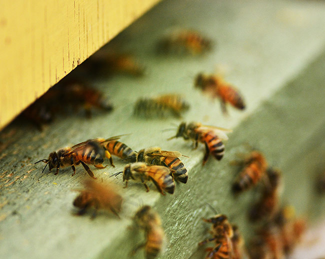 ”Sillä on laukut jaloissa, mihin se pakkaa siitepölyä, jota tarvitaan uusien mehiläisten kasvattamiseen. Laukut ovat täynnä, kun mehiläinen lentää pesään. Mehiläisellä on niin tarkka suuntavaisto ja hajuaisti, että se menee omaan pesään, vaikka vieressä on muita pesiä. Jos se yrittäisikin mennä naapuripesään, hoitelisivat vartijat sen heti.”