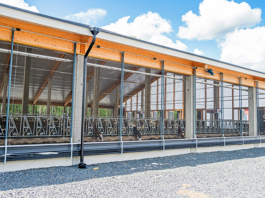 – Valoharja, alas asti ulottuvat valopäädyt ja verhoseinät tekevät uudesta navetasta valoisan. Kun katto on korkealla, sisäilma pysyy hyvänä. Se parantaa merkittävästi eläinten hyvinvointia ja tekee omasta työstä miellyttävämpää, yrittäjät toteavat.