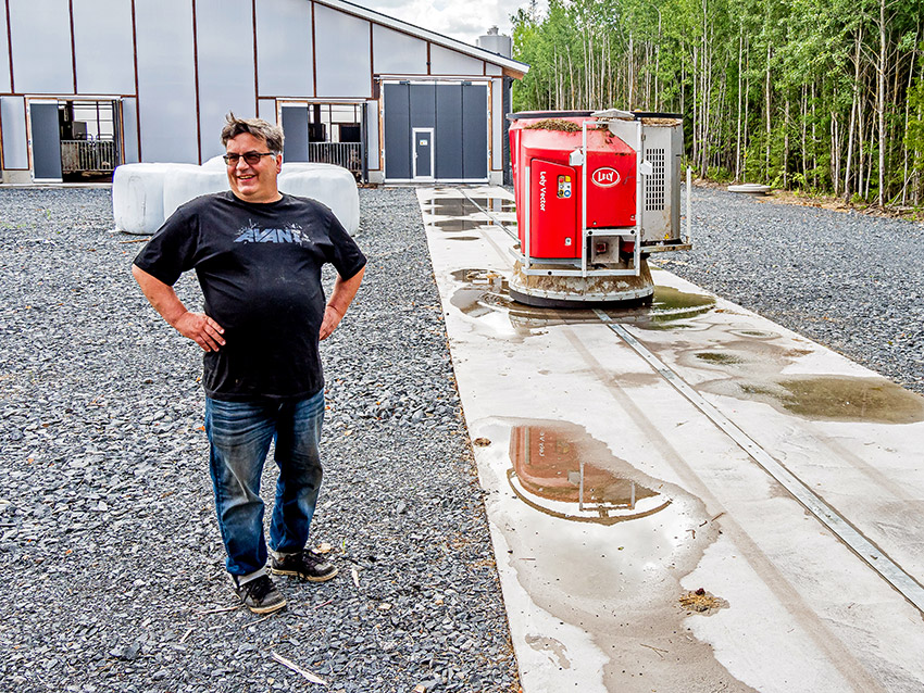 – Kahden robotin tuotosmäärällä on helpompi saada kallis investointi maksuun. Kun lypsykoneita on kaksi, emme ole huutavassa hukassa, jos toinen koneista menee epäkuntoon, isäntä perustelee.